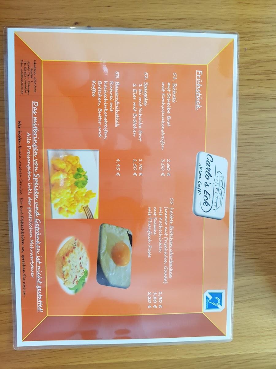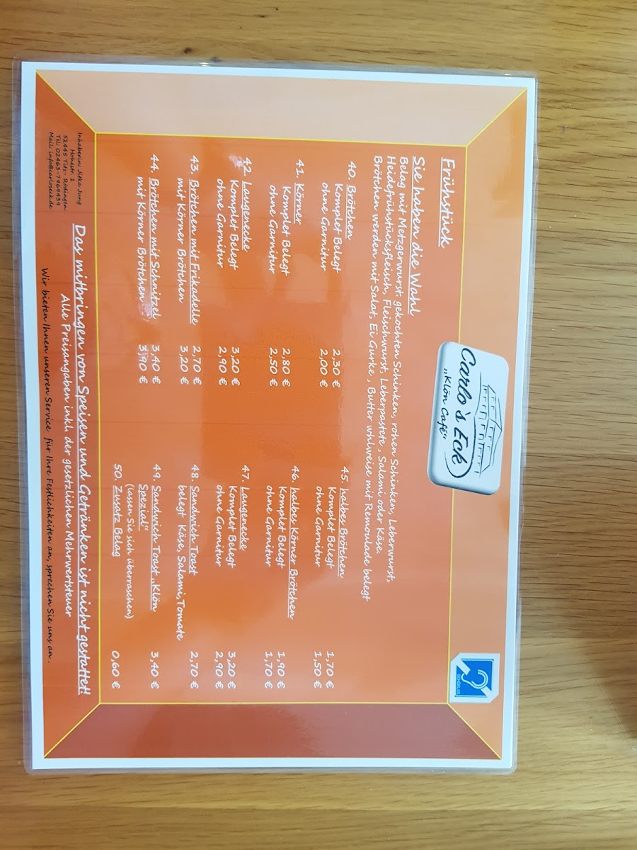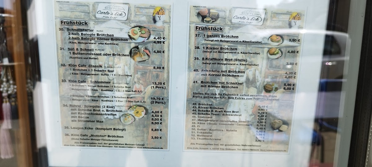 Klön Café Menu